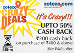 Click here to go to Zotezo.- Get Rs.200 Cashback On Purchase Of Rs.400 sitewide